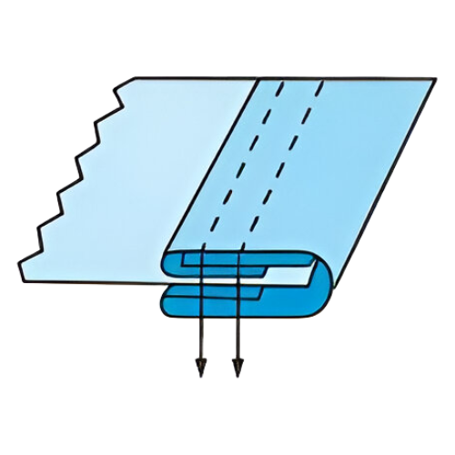 Este folder permite aplicar cintas o bieses de 35 mm doblando ambos lados de la tela al mismo tiempo. El resultado es un acabado limpio, profesional y resistente. Se usa en orillos, dobladillos, bordes decorativos y refuerzos.