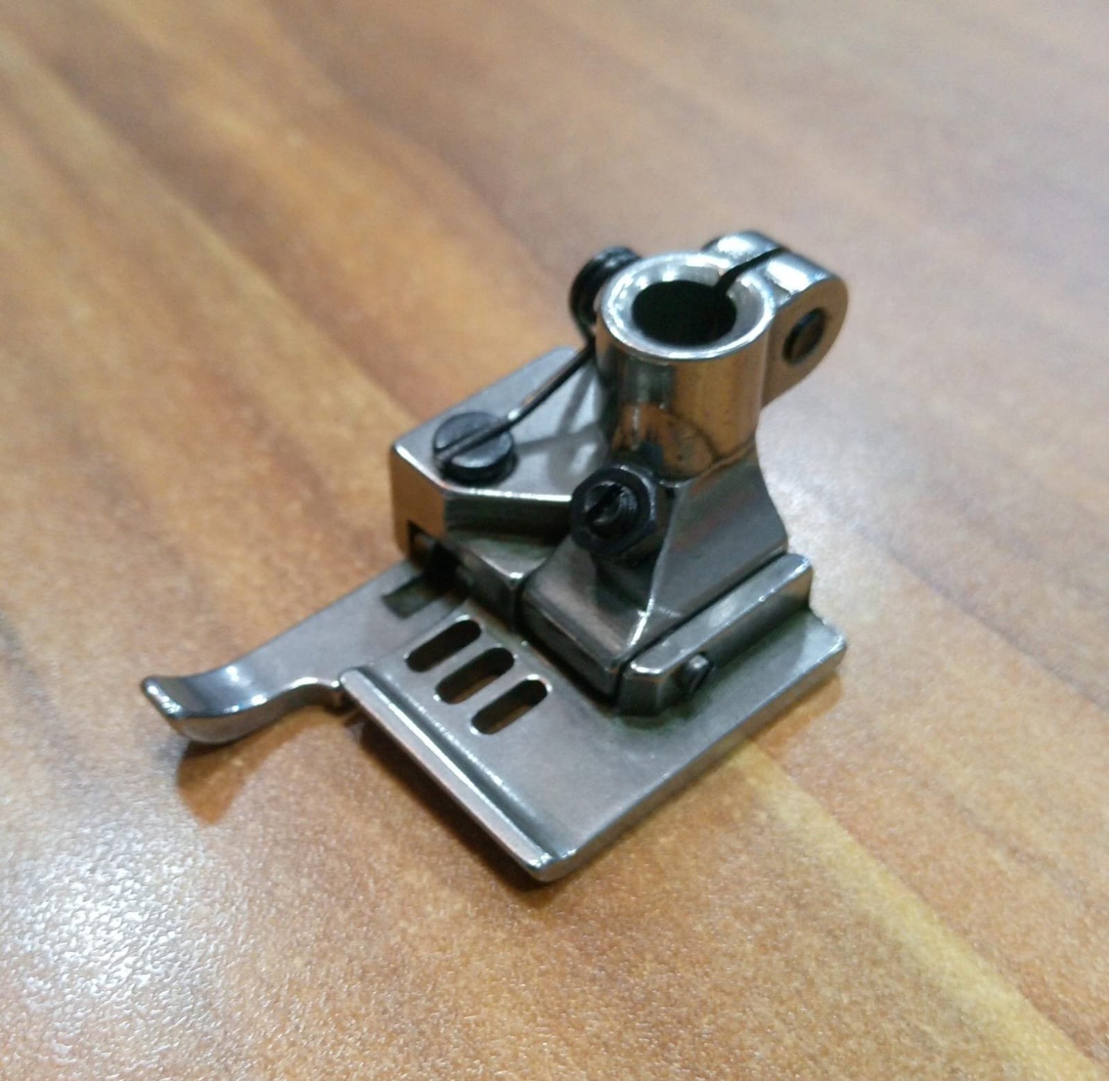 Con un ancho de 5.6 mm, este prensatela es perfecto para hacer acabados delgados y bien detallados. Por eso, es muy usado en talleres de confección, fábricas de ropa o por quienes hacen prendas con precisión Prensatela en L collaretera 5.6 – 25713255.6