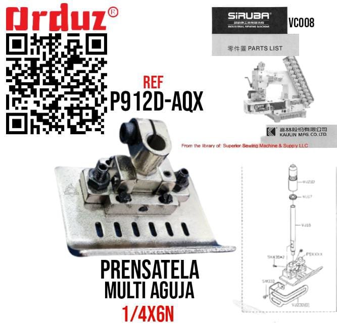 En Orduz, trabajamos para que tengas los mejores repuestos a tu alcance. Compra hoy con confianza, con atención personalizada y envíos a todo el país Prensatela Multiaguja 1/4x6N P912D-AQX para Siruba